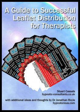 BUT WAIT! - There is MORE! - As a bonus, we will also email you our exclusive ebook "A Guide to Successful Leaflet Distribution for Therapists" which in itself will save you Hundreds of ££££'s or $$$$'s, giving you valuable tips and tricks on how to target the right market effectively, and for a minimal outlay! Written by an expert in promotional distribution for therapists, outdoor events, funfairs & entertainers, with additional ideas by Jonathan Royle, this is the Bible for every therapist who wants to promote their business quickly and affordably. We haven't released this ebook to anyone else yet, instead deciding to keep it as an exclusive gift for those who buy access to The Elite Hypnosis Bootcamp Marketing Plan through us. Even if you decide, for what ever reason, not to order your leaflets through us, we will be happy to email you a copy of the ebook on request, as a free gift.